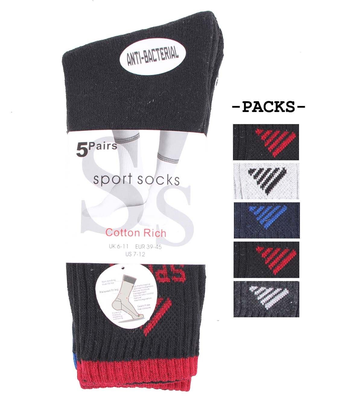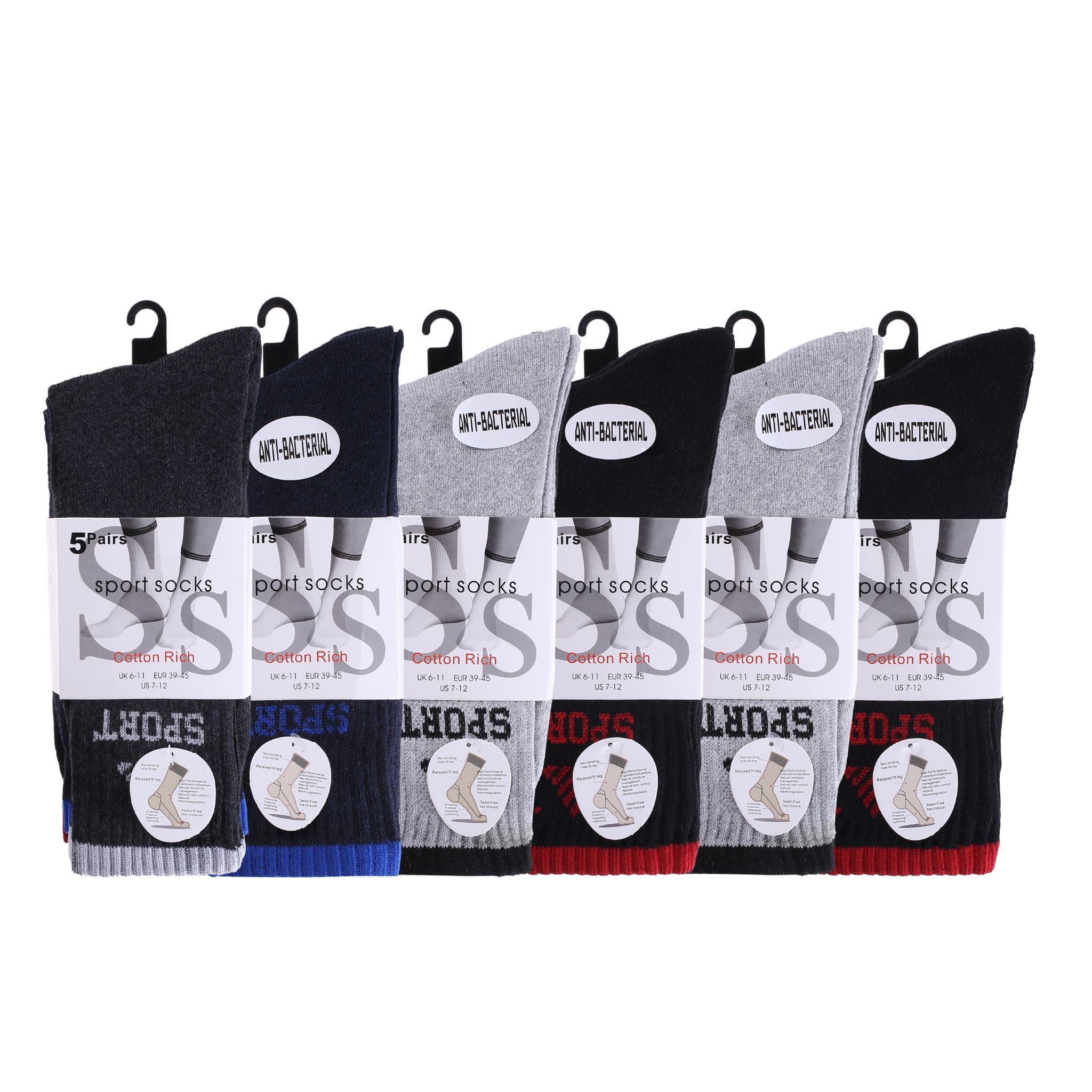 Mens 5 pair anti bacterial sport sock cotton rich cushioned 30 pairs socks