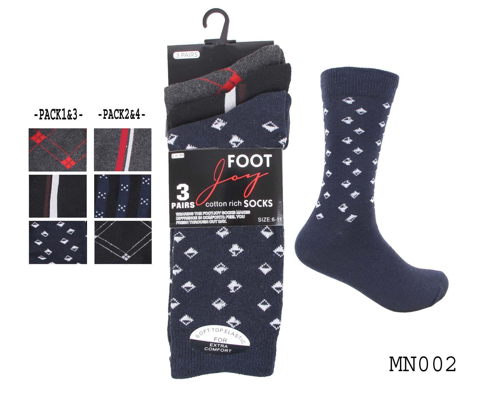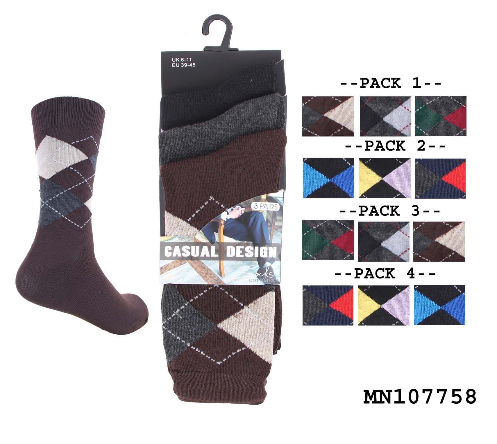 Mens 3 pair diamond style dress socks cotton causal wear socks