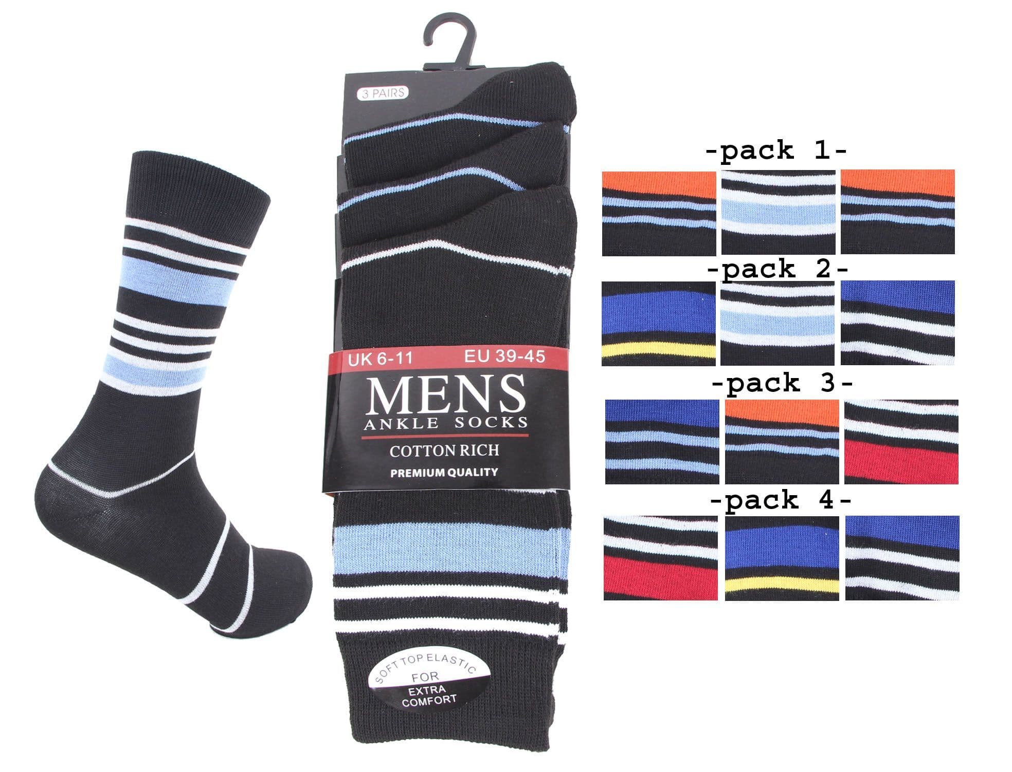 Mens 3 pair stripes style assorted dress socks causal wear socks
