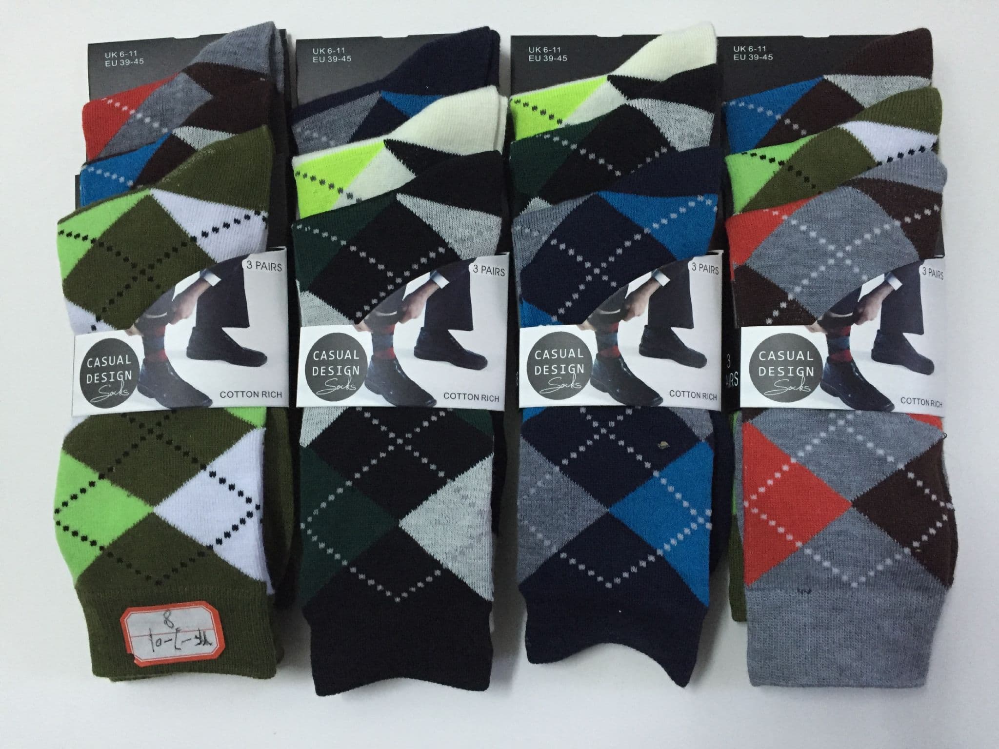 Men diamond causal wear cotton rich dress socks